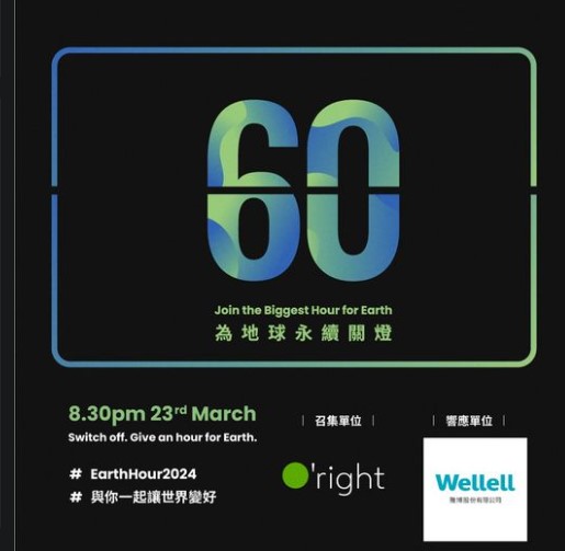 In 2024, we took part in Earth Hour organized by the World Wildlife Fund (WWF) again. On March 23, starting at 8:30 p.m., we switched off the lights together with government agencies and other companies. A total of 2,249 lights were turned off in Wellell’s offices and factories.